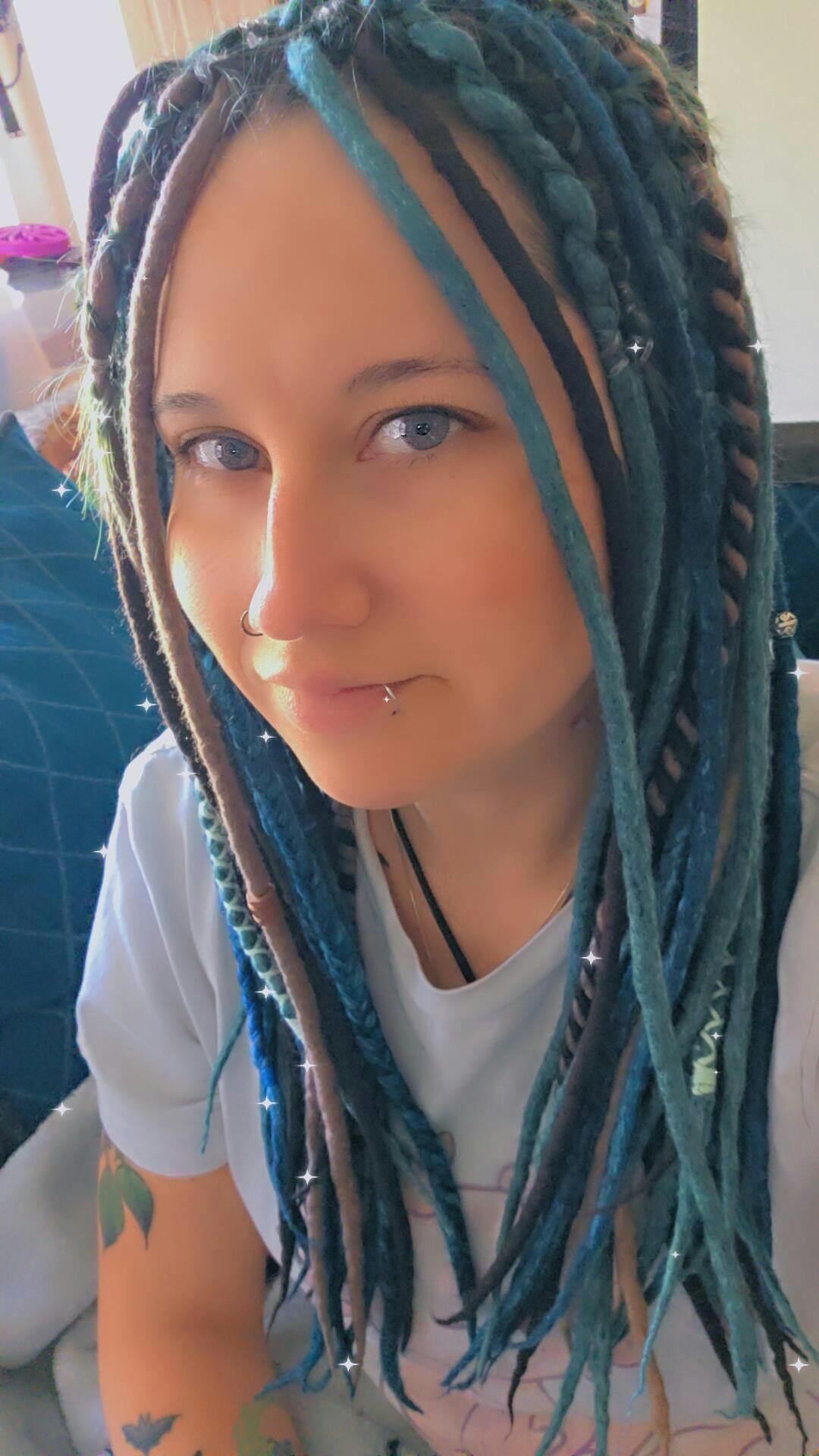 I bought my first set of Boholucy dreads. 40 DE and 20 SE dreads. It took me three installs (I do tit myself) to get the hang of the difference of installing wool dread’s compared with synthetic dreads. They feel so light and don’t itch. I absolutely love them!