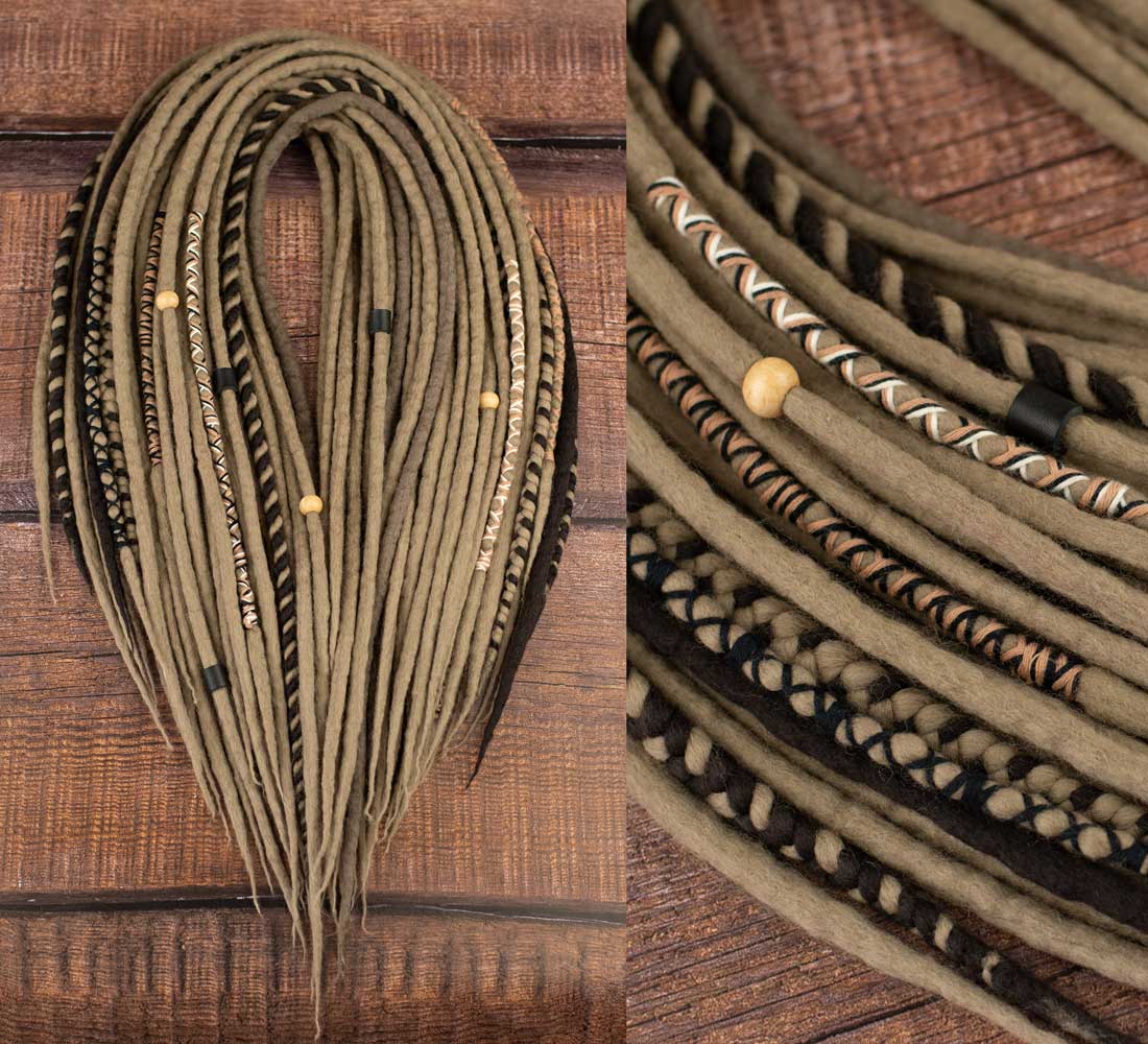• Wool dreads are light, incredibly soft and comfortable to wear. You can have any color hair you imagine without having to dye it. You can try new lengths and styles. And if you have a pair of skillful hands, you can even install them for yourself - but you can also ask for some help from a friend or a professional.
