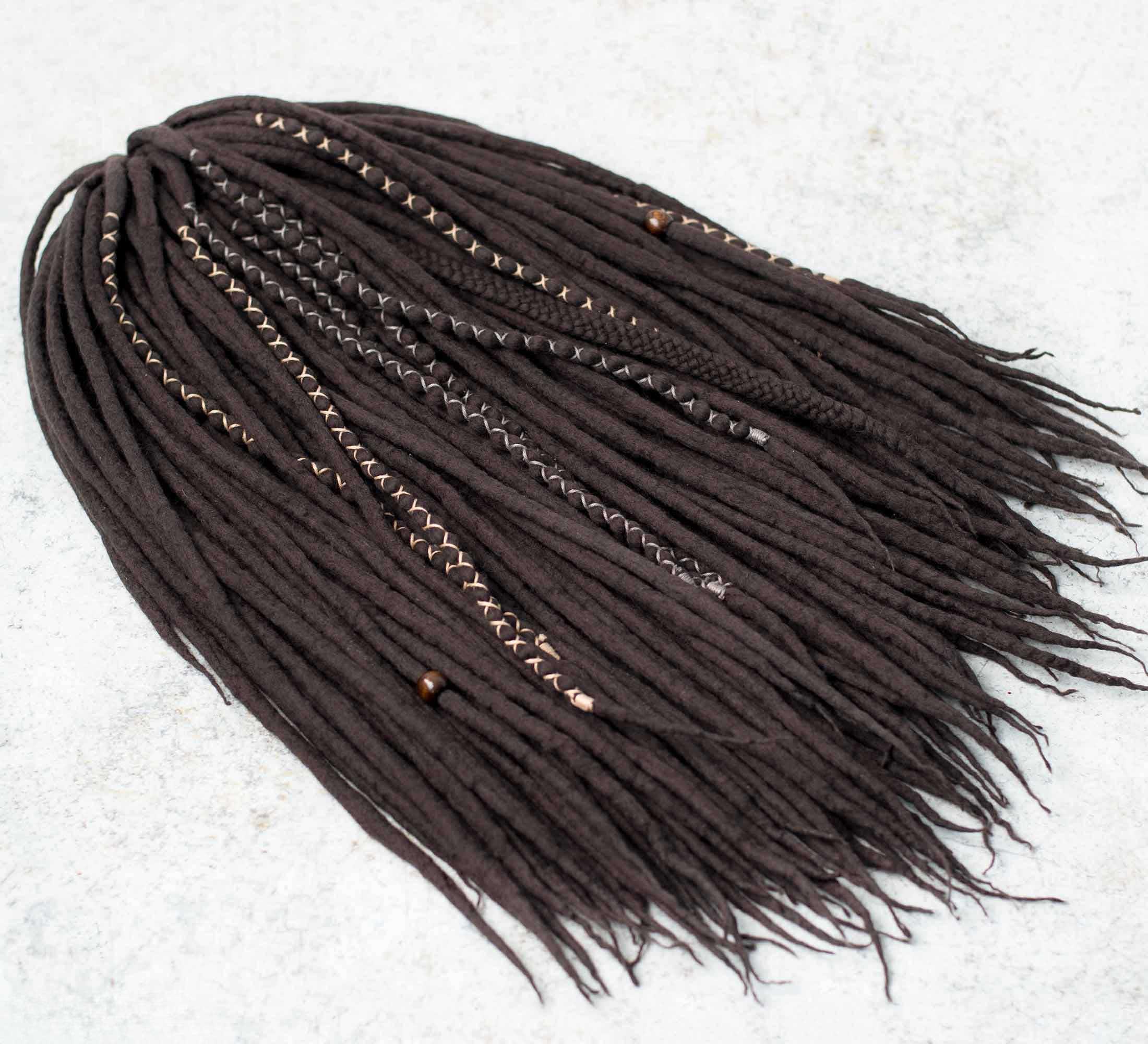 By wearing this dark brown wool dreadlock, you can protect your natural hair from the environmental elements and damage caused by heat styling or chemical treatments. Dreadlocks act as a shield, keeping your hair healthy and intact while allowing your hair to grow. Wool dreadlocks require minimal daily maintenance, so you can spend less time styling and more time on other activities. This makes them a convenient choice for individuals with busy lifestyles.