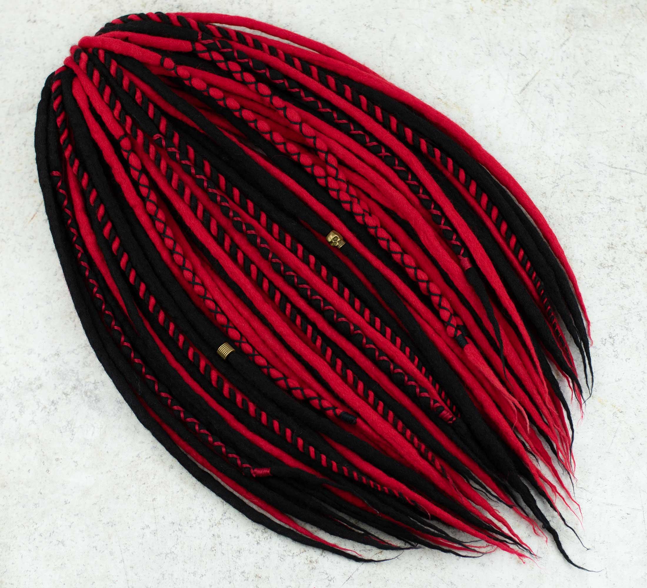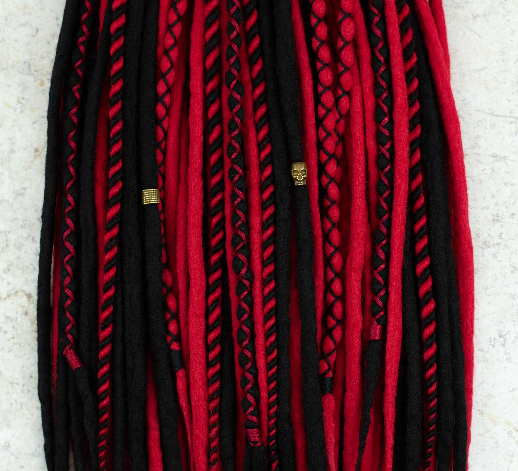 Dare to be different, embrace the symbolism of black and red and experience the natural comfort and durability of wool. Let your inner beauty blossom with these wool dreadlocks. Make a statement and do it boldly.