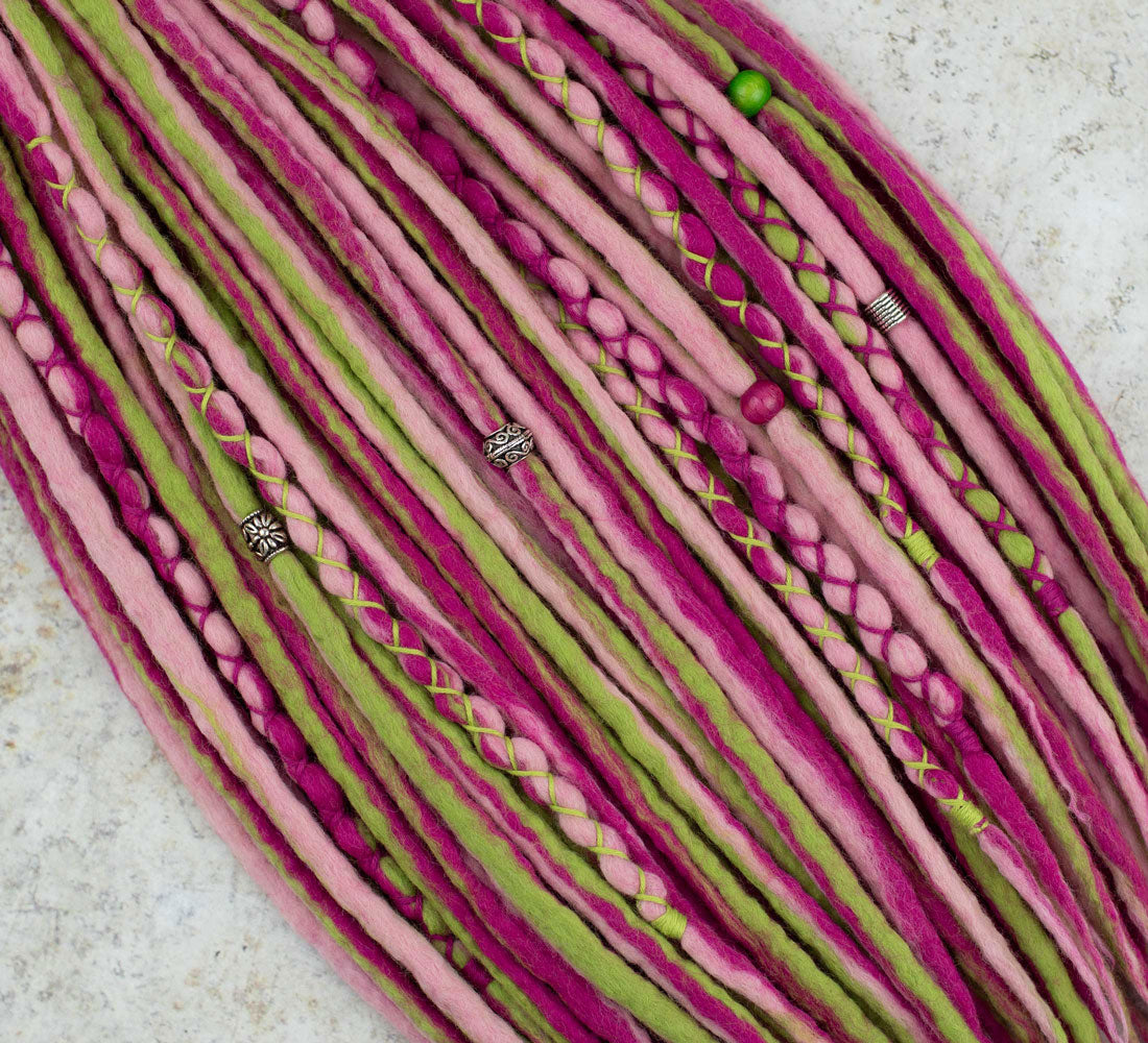 Elevate your style, whether you want to make a powerful statement or simply express your inner beauty and growth, these wool dreads are the perfect choice. Experience the beauty, symbolism and individuality that our "Gloxinia" set will bring to your life.
