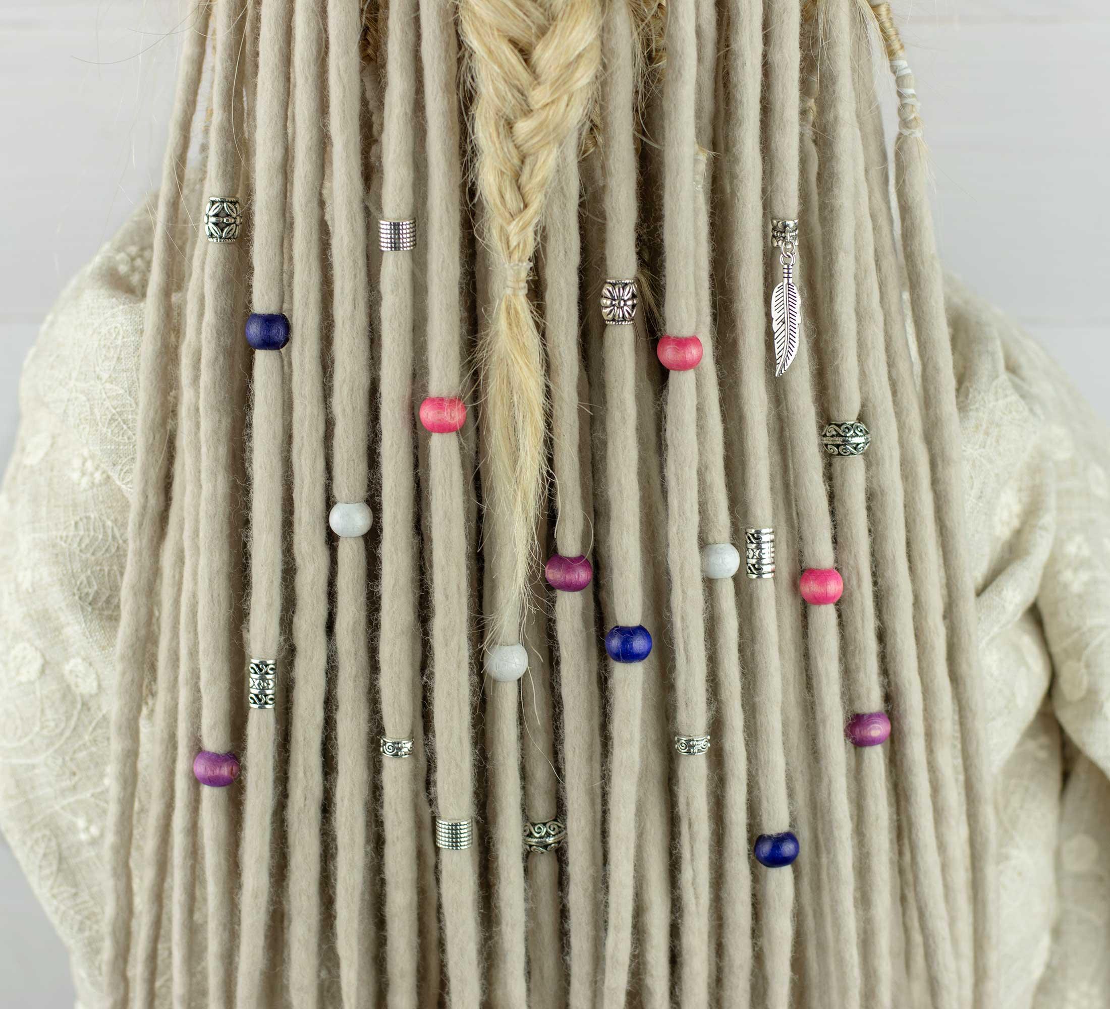 Hole size: 4-5 mm /0.16-0.19 inches / - fits perfectly with our wool dreadlocks