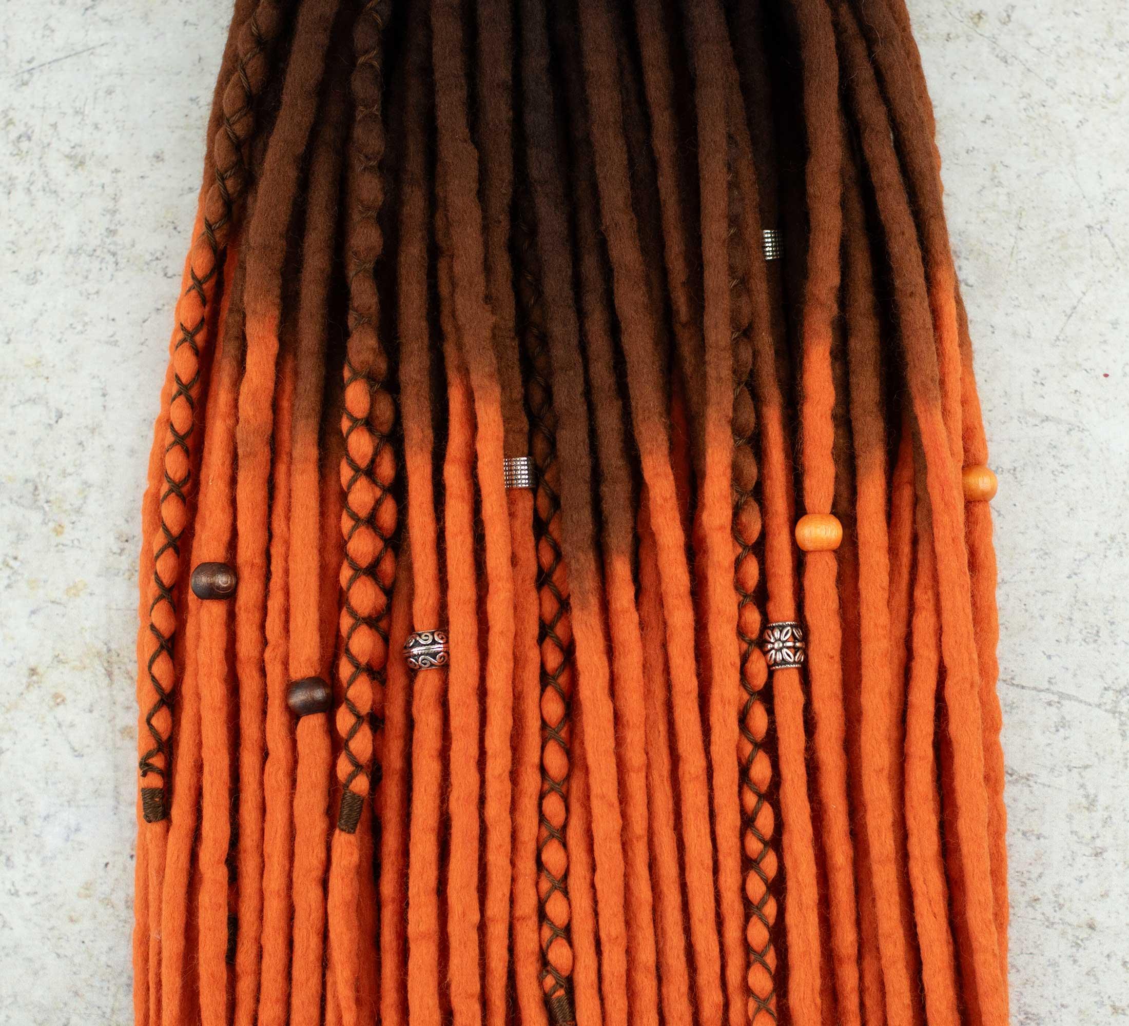 Our gorgeous Marigold ombre wool dreadlocks are always cheerful, inspired by the brilliant sunny marigolds that fill the garden all summer long.