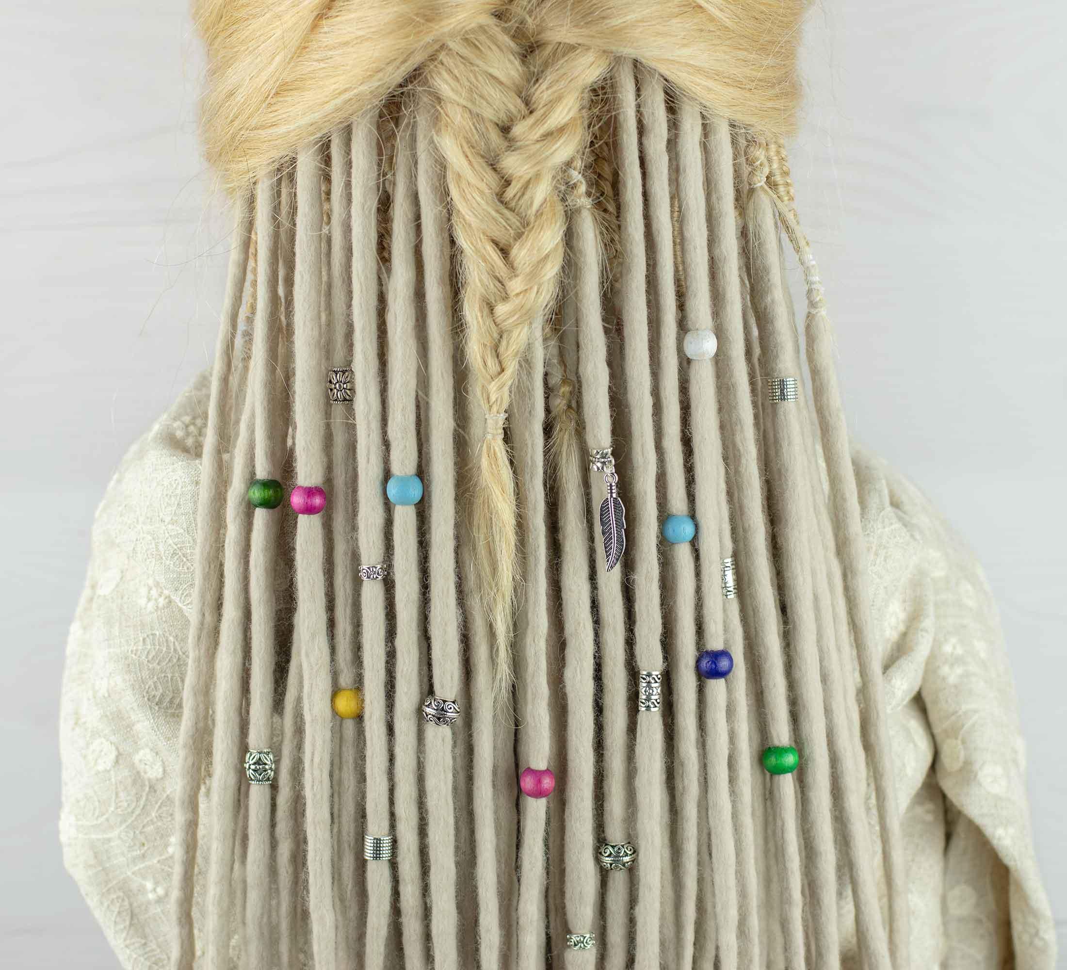 Hole size: 4-5 mm /0.16-0.19 inches / - fits perfectly with our wool dreadlocks