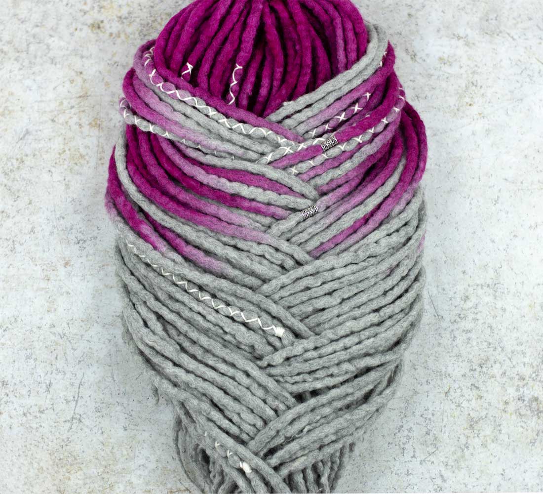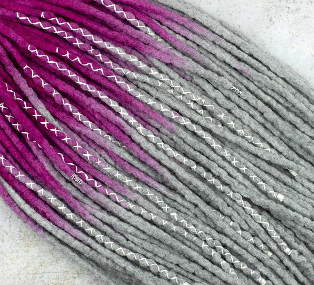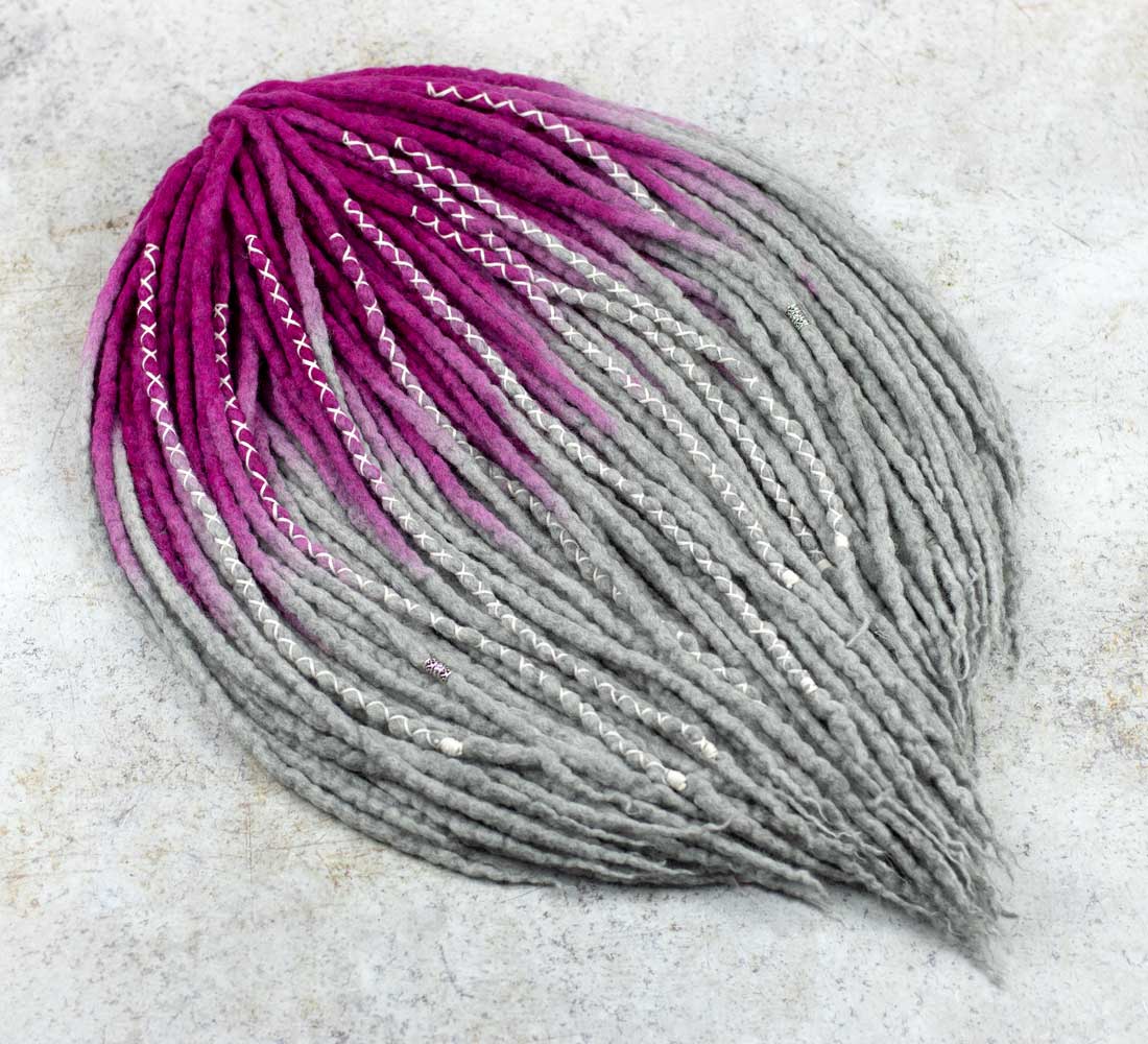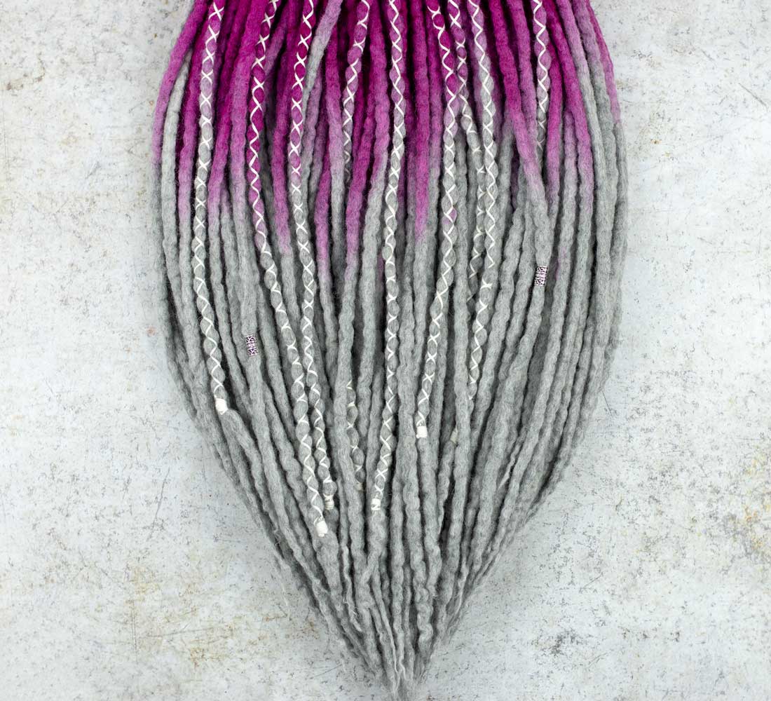 Pinkgrey wool dreadlock extensions