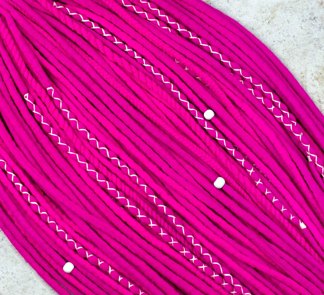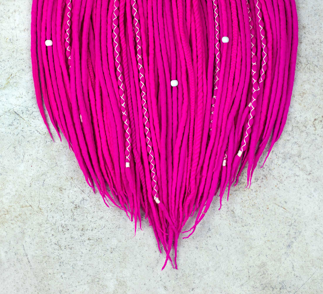 Neon Pink wool hair extensions