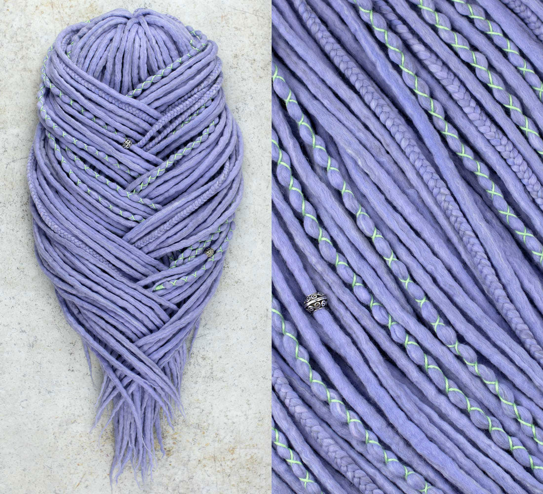 Lavender wool dreadlocks with braids