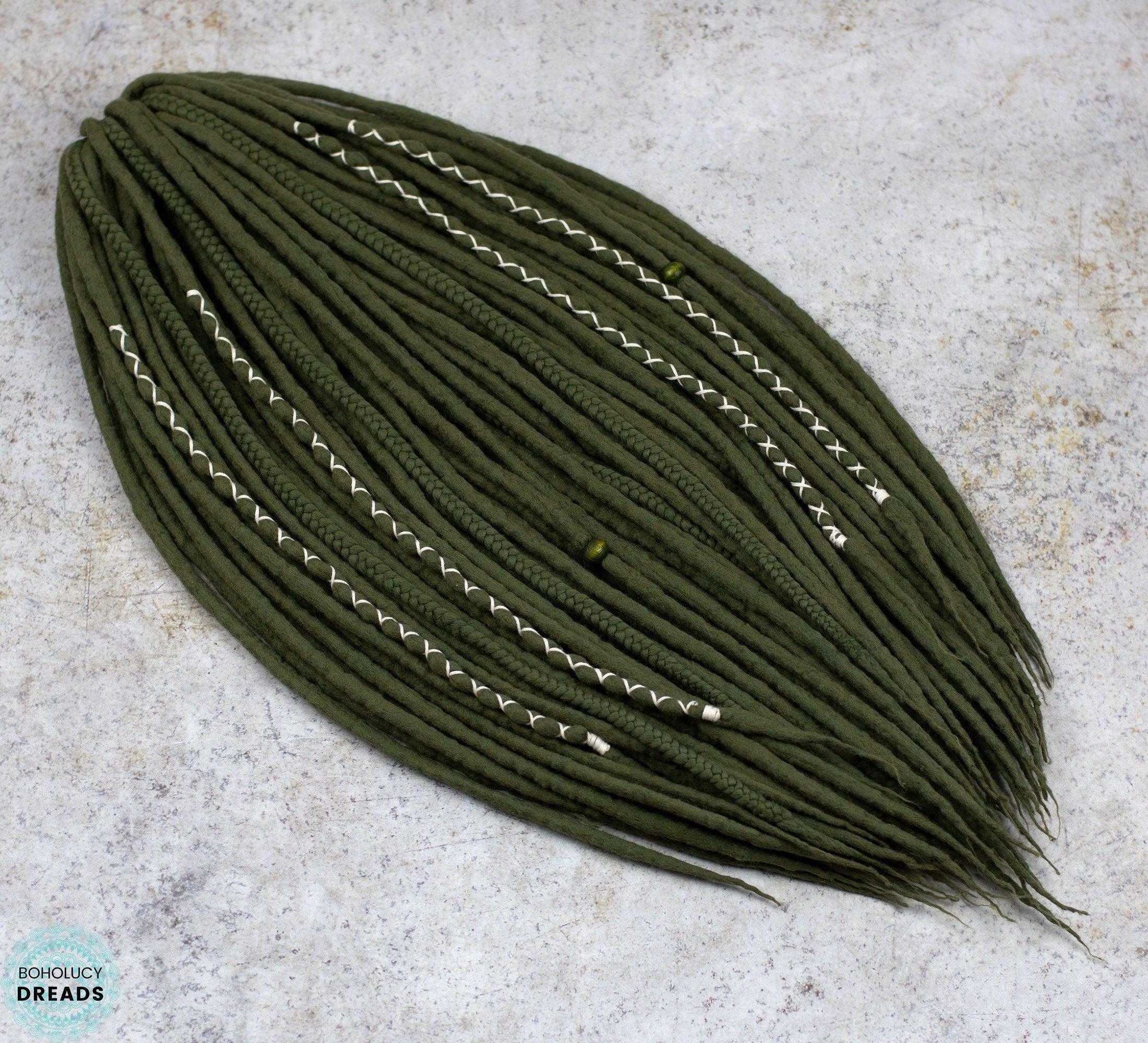 0.2-0.27 inches (5-7 mm) The boholucydreads are pencil thin or slightly thinner to be comfy. Handmade wool dreadlocks guarantee an authentic look as they vary slightly in thickness and length.